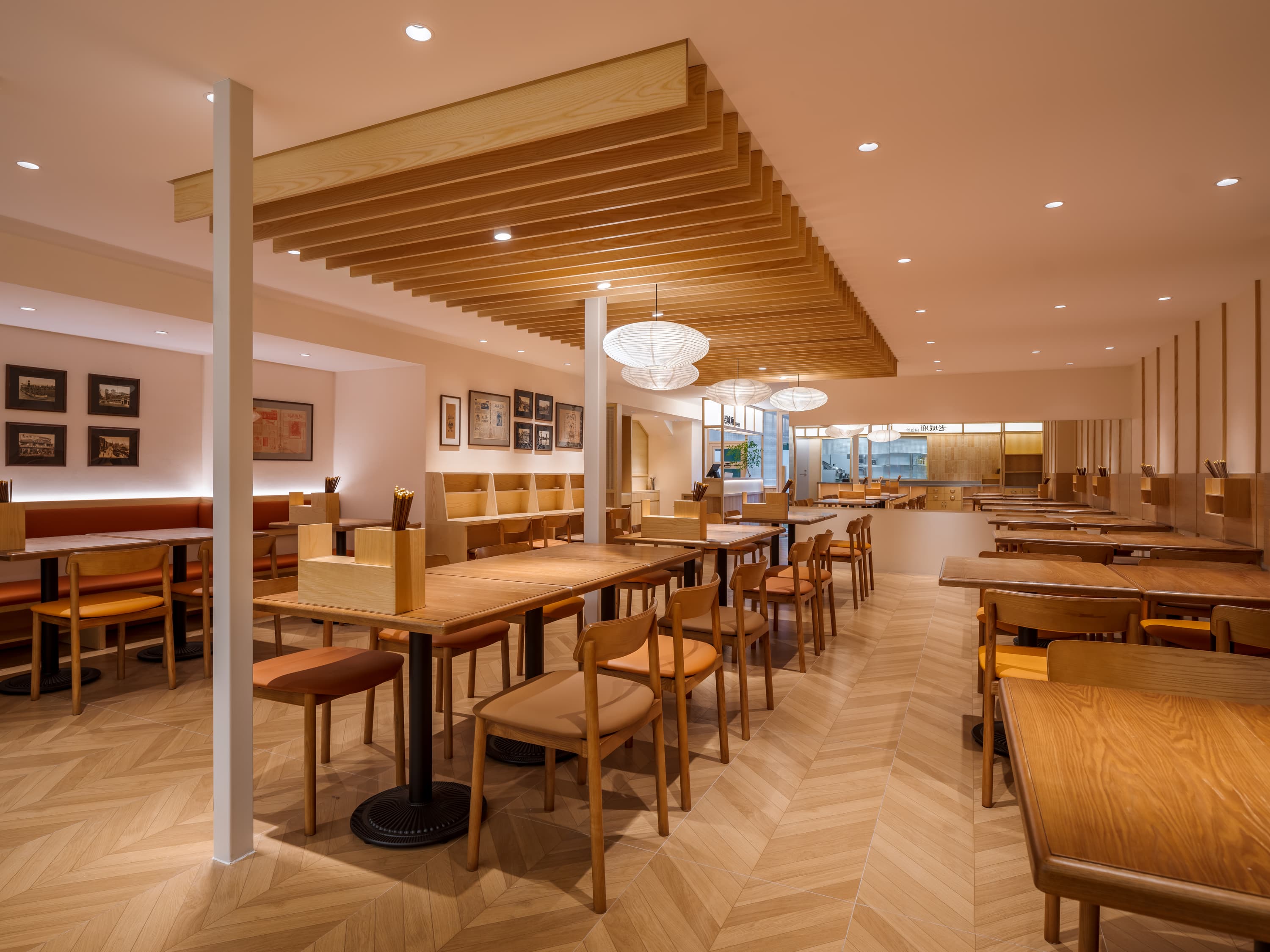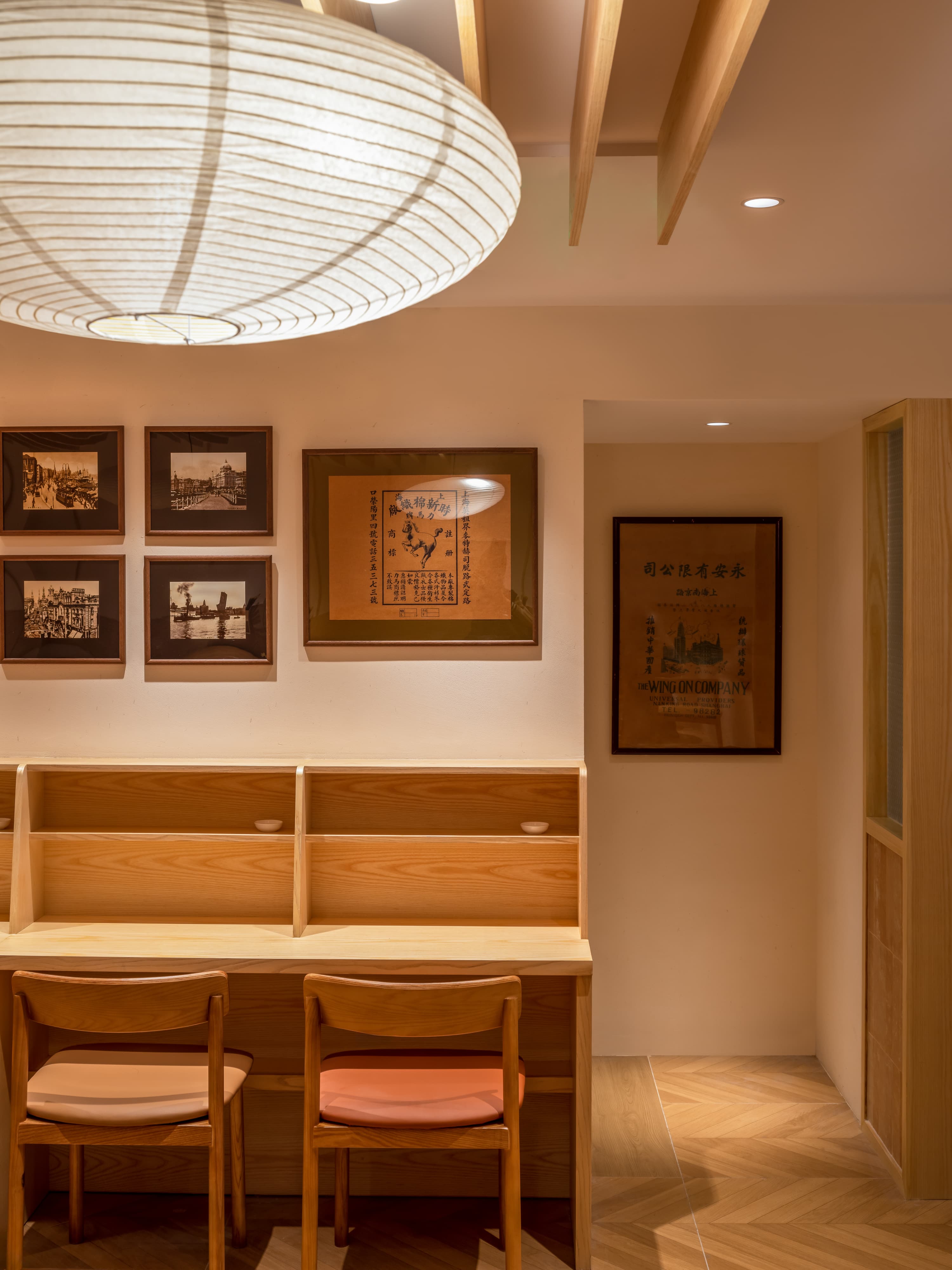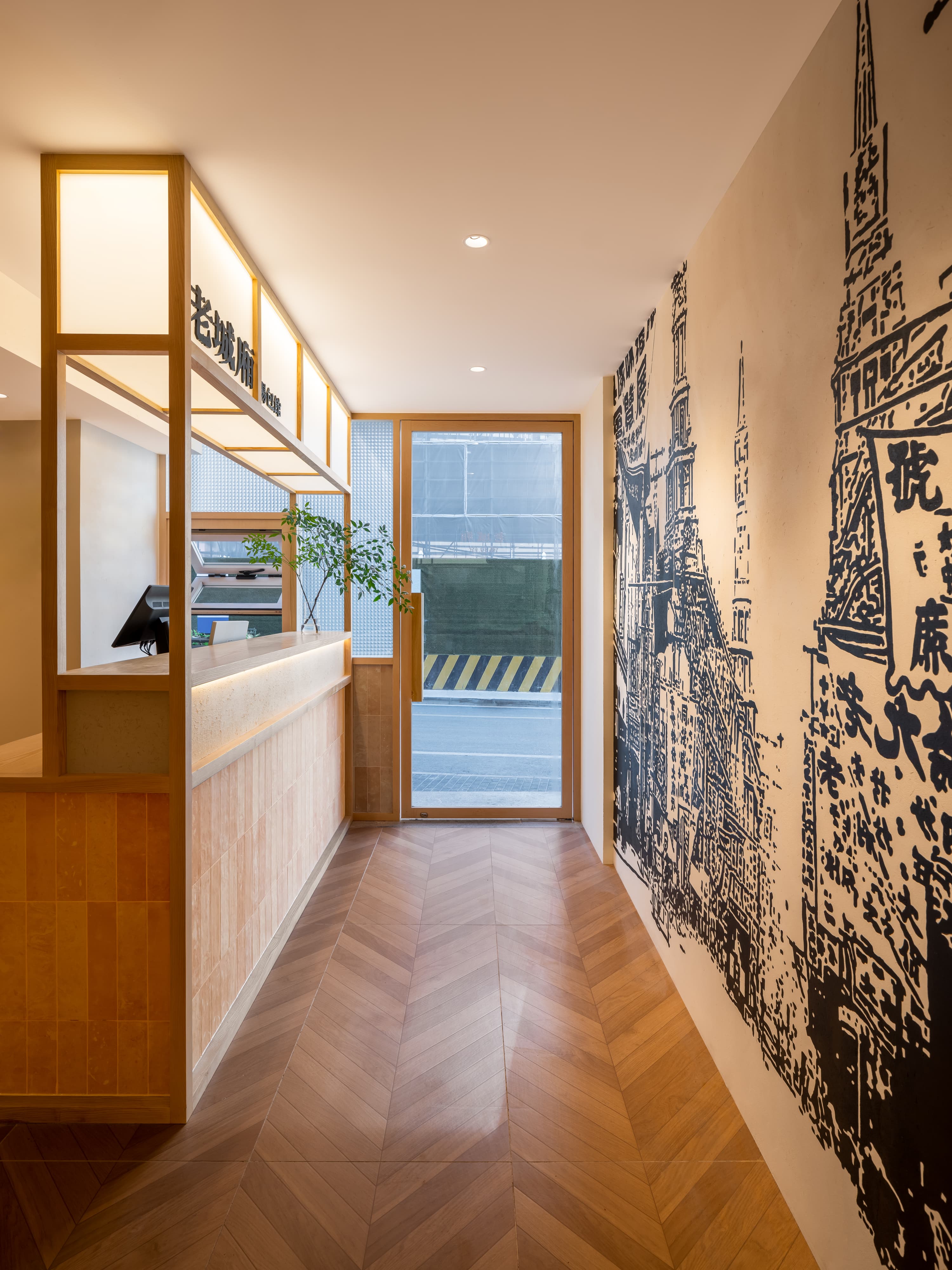 在这片充满故事的土地上,集宅将业主的老城厢情怀作为设计主线,巧妙融入温馨清爽的木质元素,最终呈现出复古怀旧、别具一格的老城厢汤包馆。无论是墙壁上细腻勾勒的城市速写,还是错落有致摆放的老物件,都承载着老城厢的儿时记忆与上海独特的烟火气息。以传统味道作为媒介,让食客在品尝美味中也品味着最纯正的老城厢风貌。