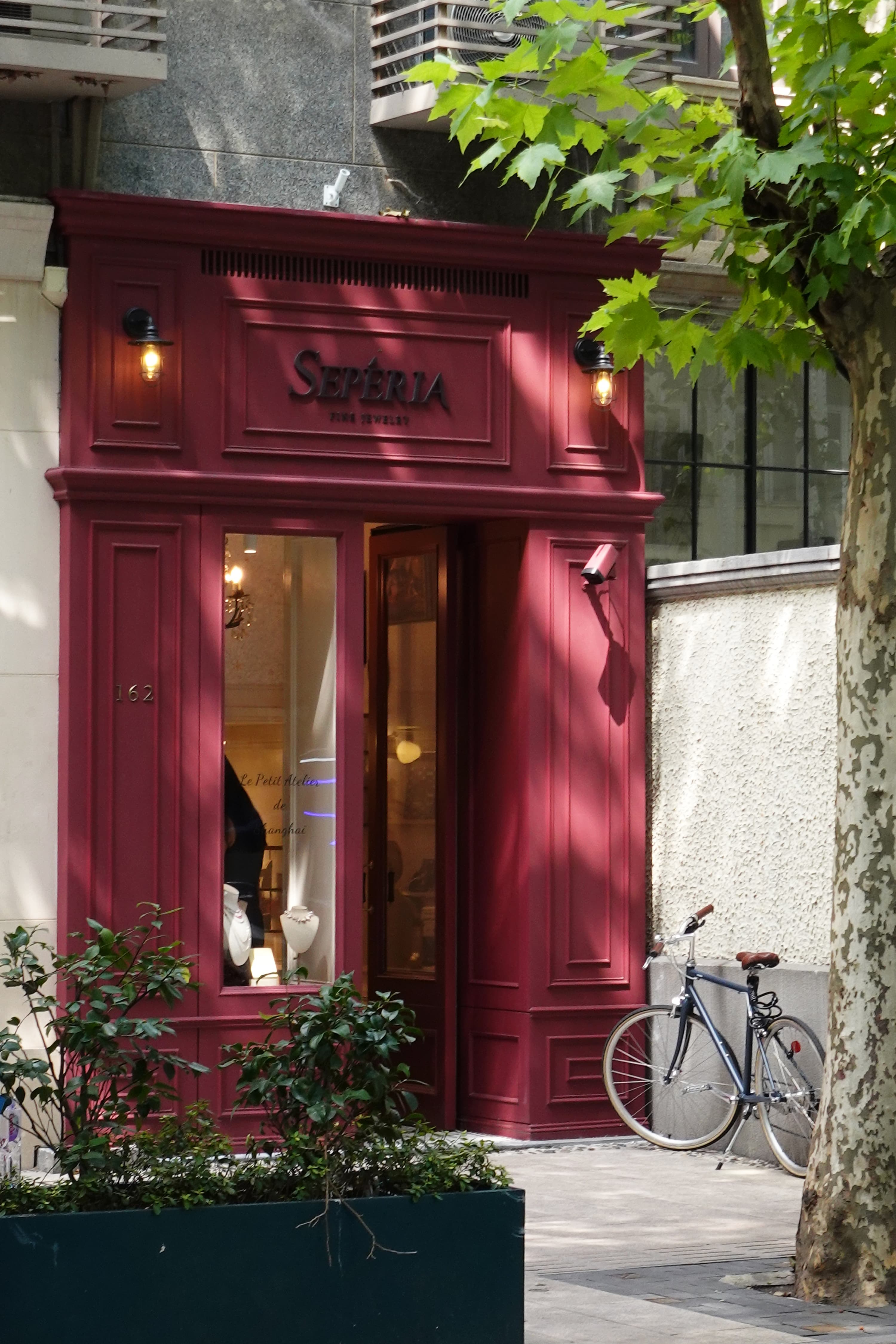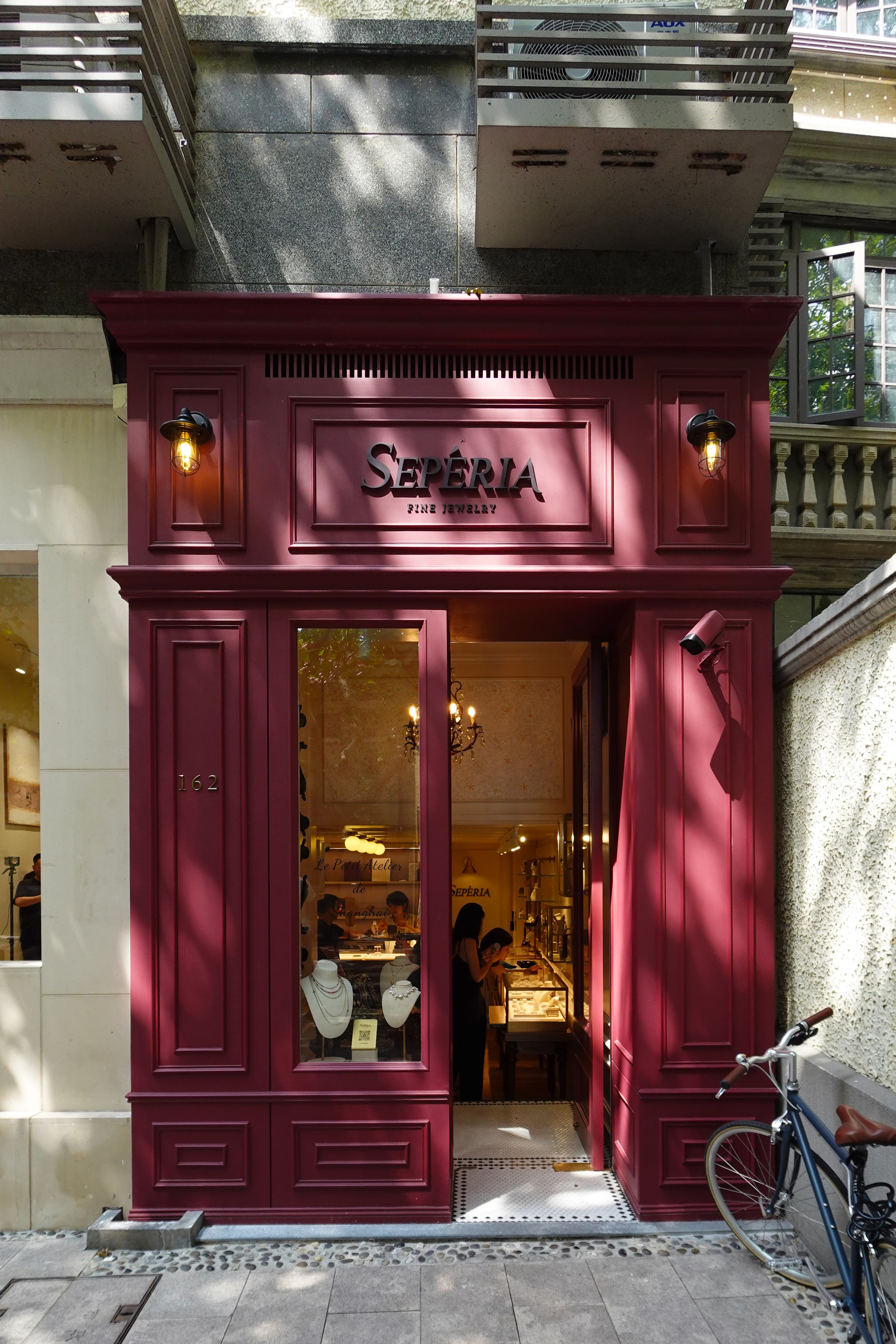 Seperia美学珠宝线下体验空间位于南昌路162号,梅子色的法式门头常常会吸引很多人驻足拍照,无意中成了南昌路新晋打卡点。
