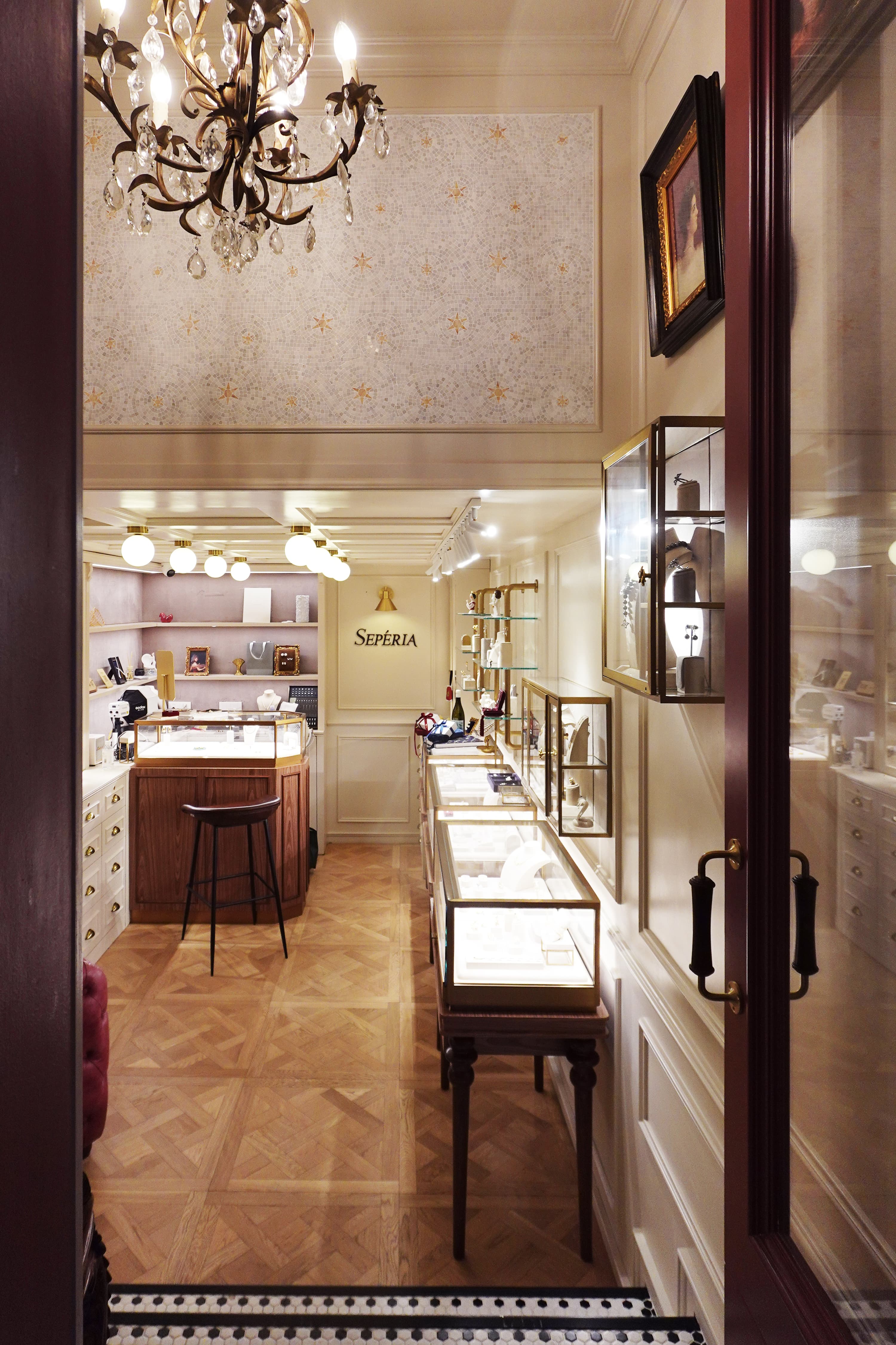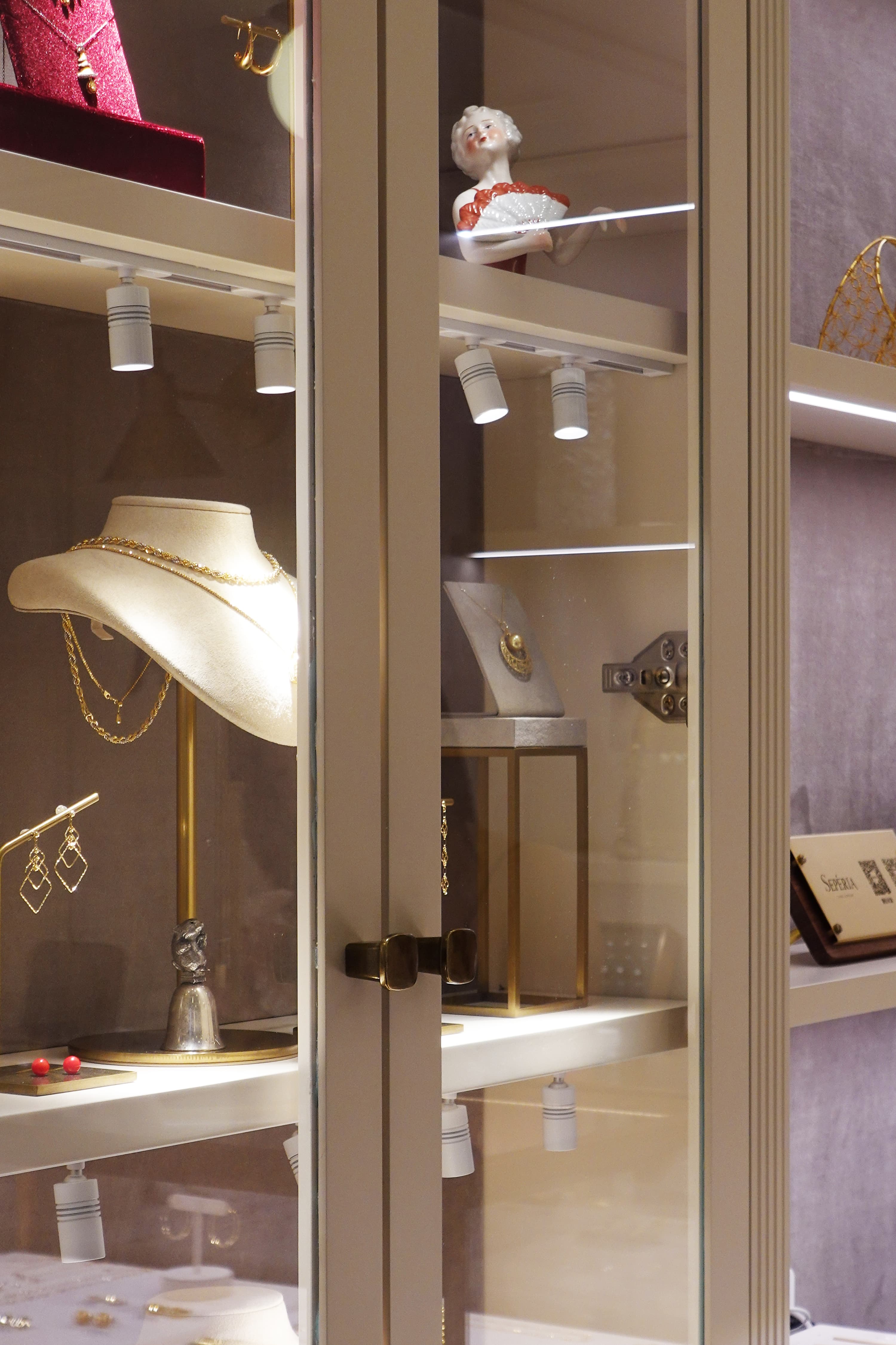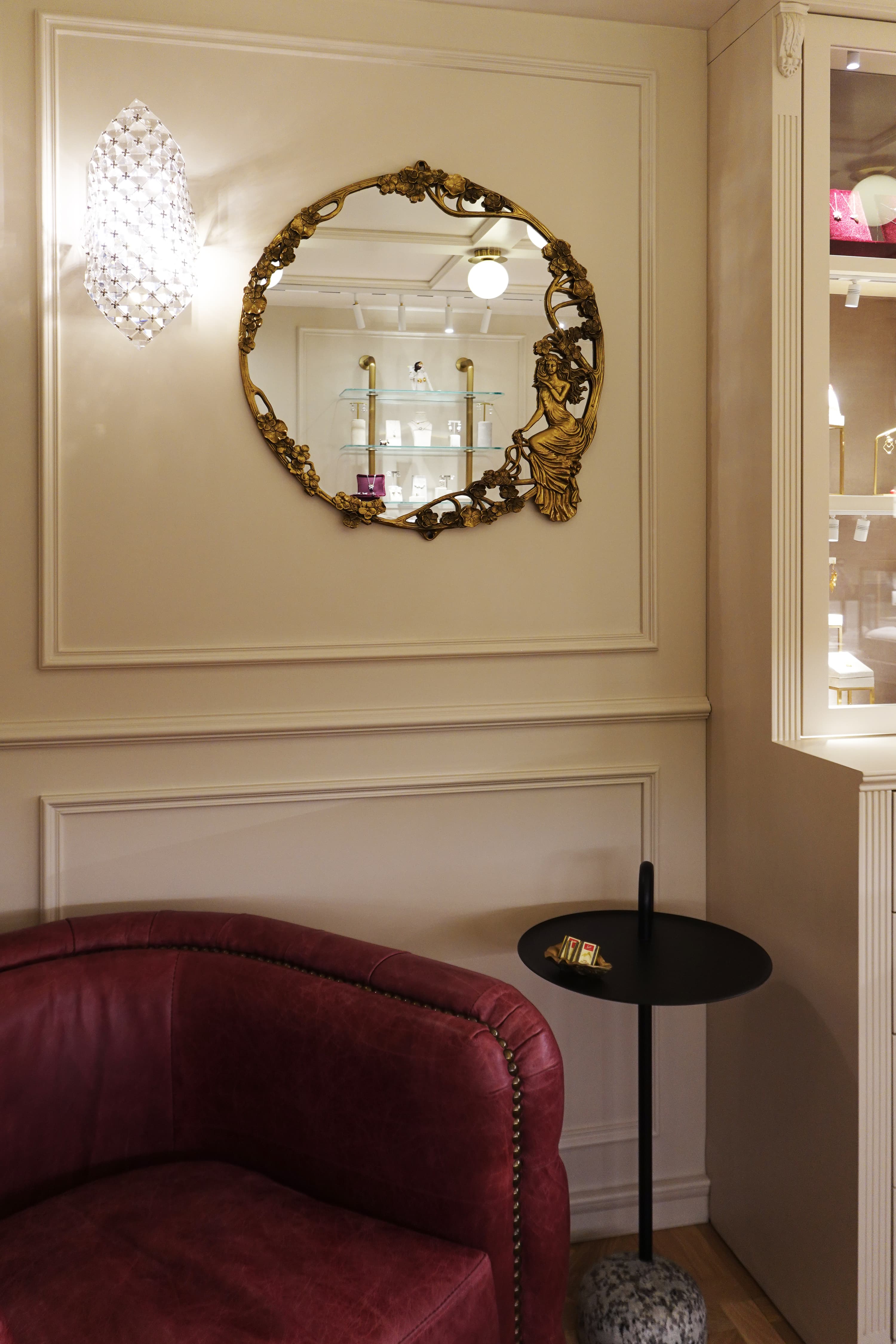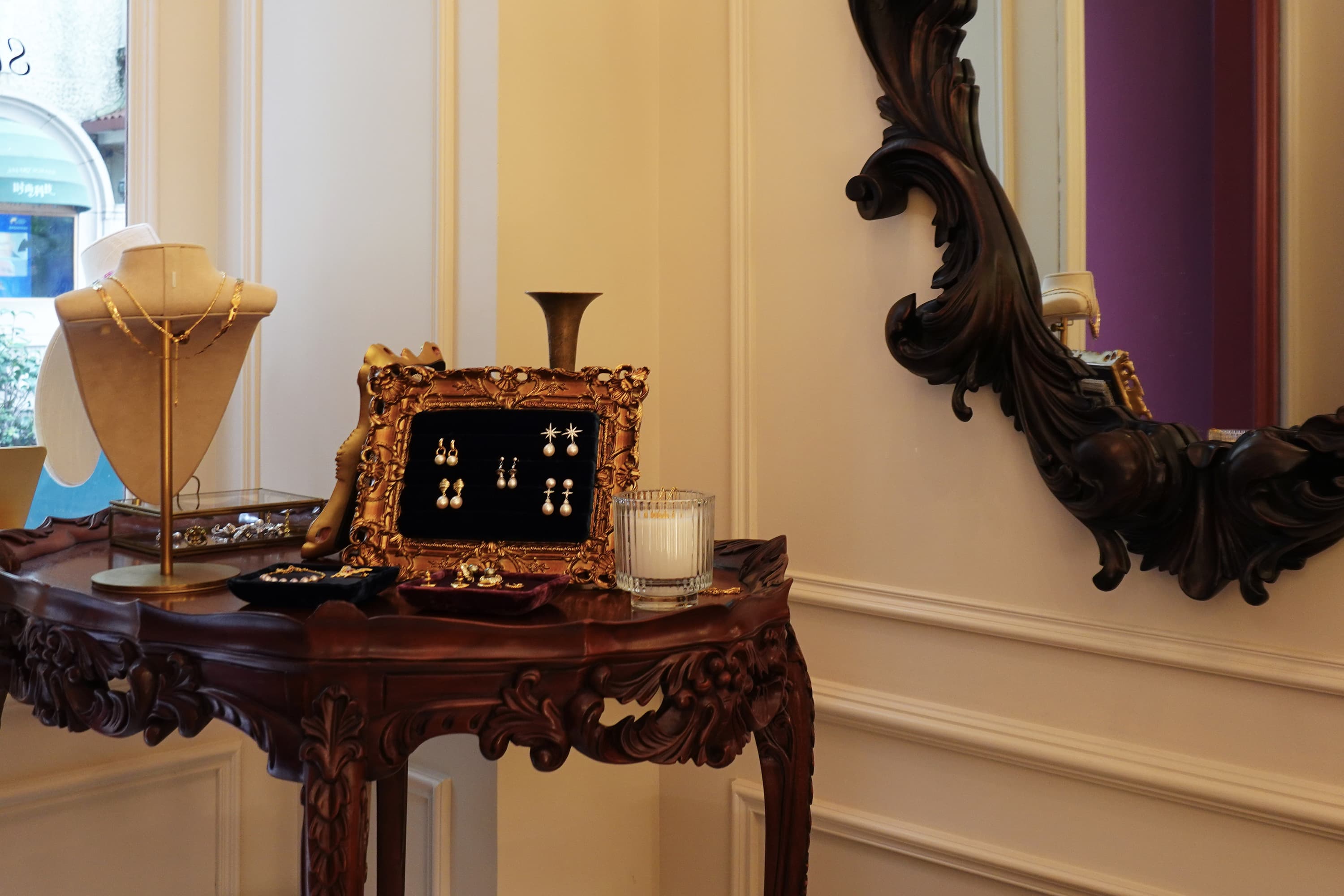 极具法式风情的门头让人仿佛置身于欧洲街角,一抹独特的梅子色带来无限热情与活力,构建出魅力十足的城市街景。小而美的空间让人感到放松与舒适,可以近距离感受珠宝的美感,精心挑选的古董装饰充满浪漫气息,与复古经典的珠宝魅力相得益彰。