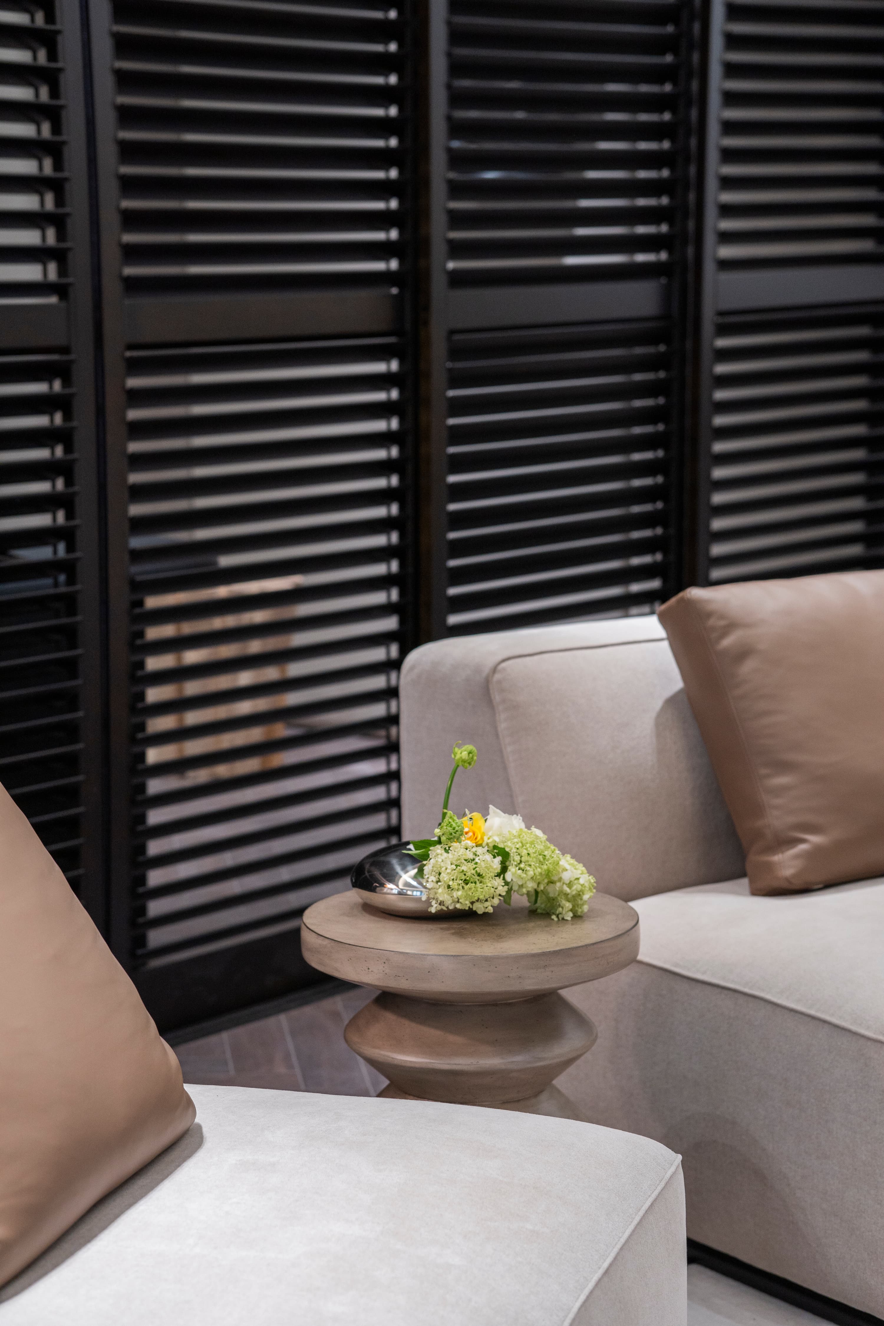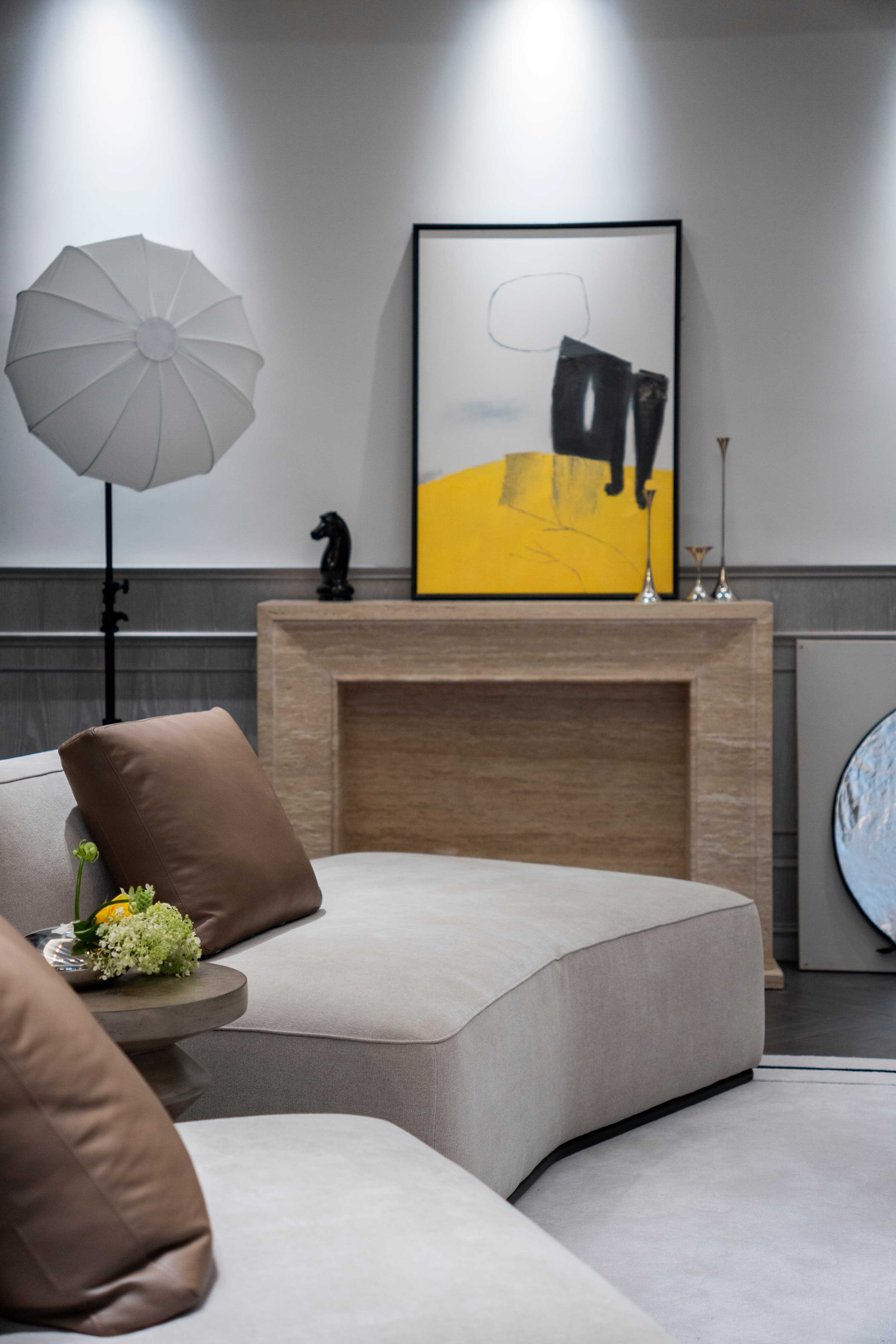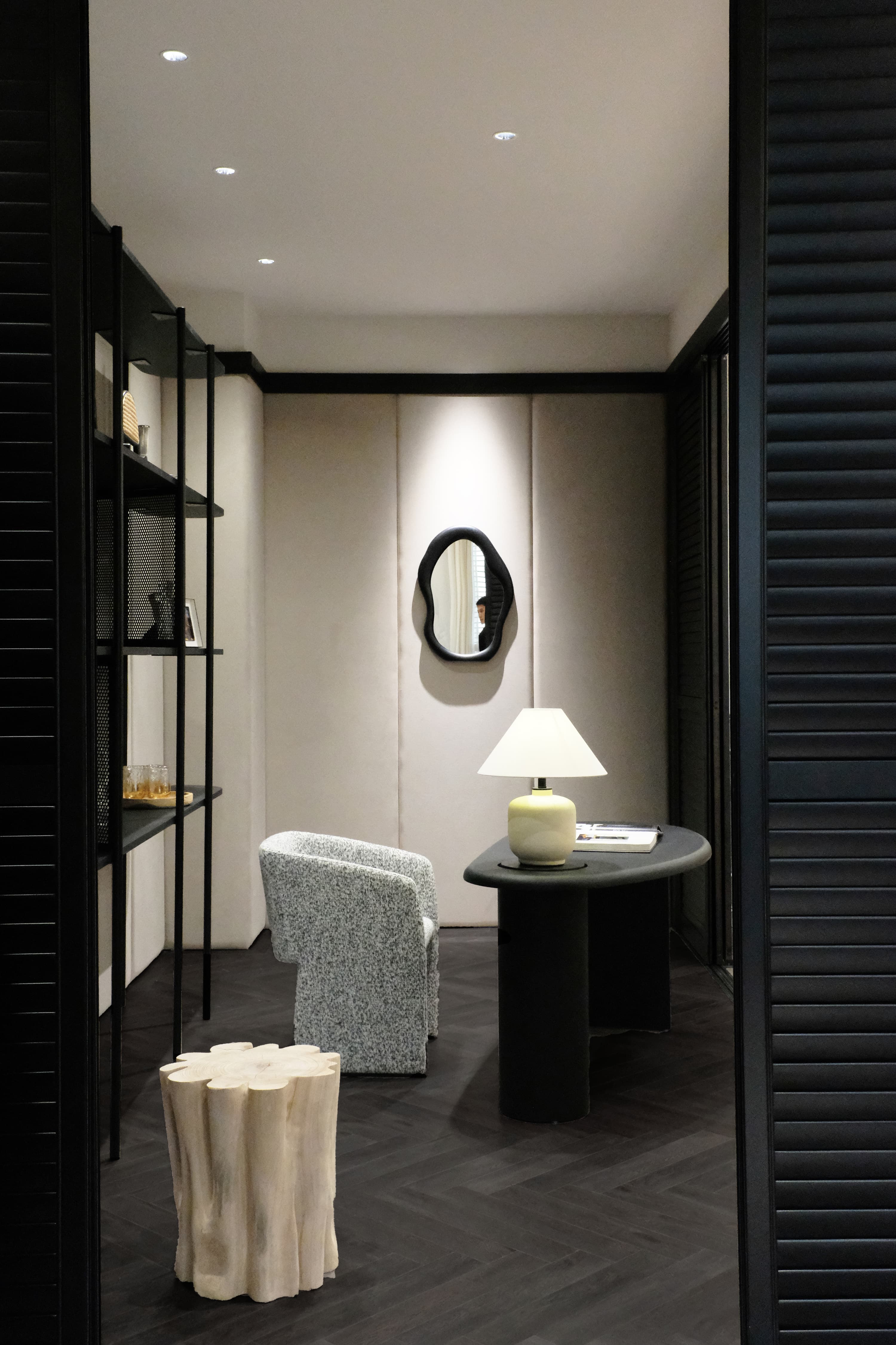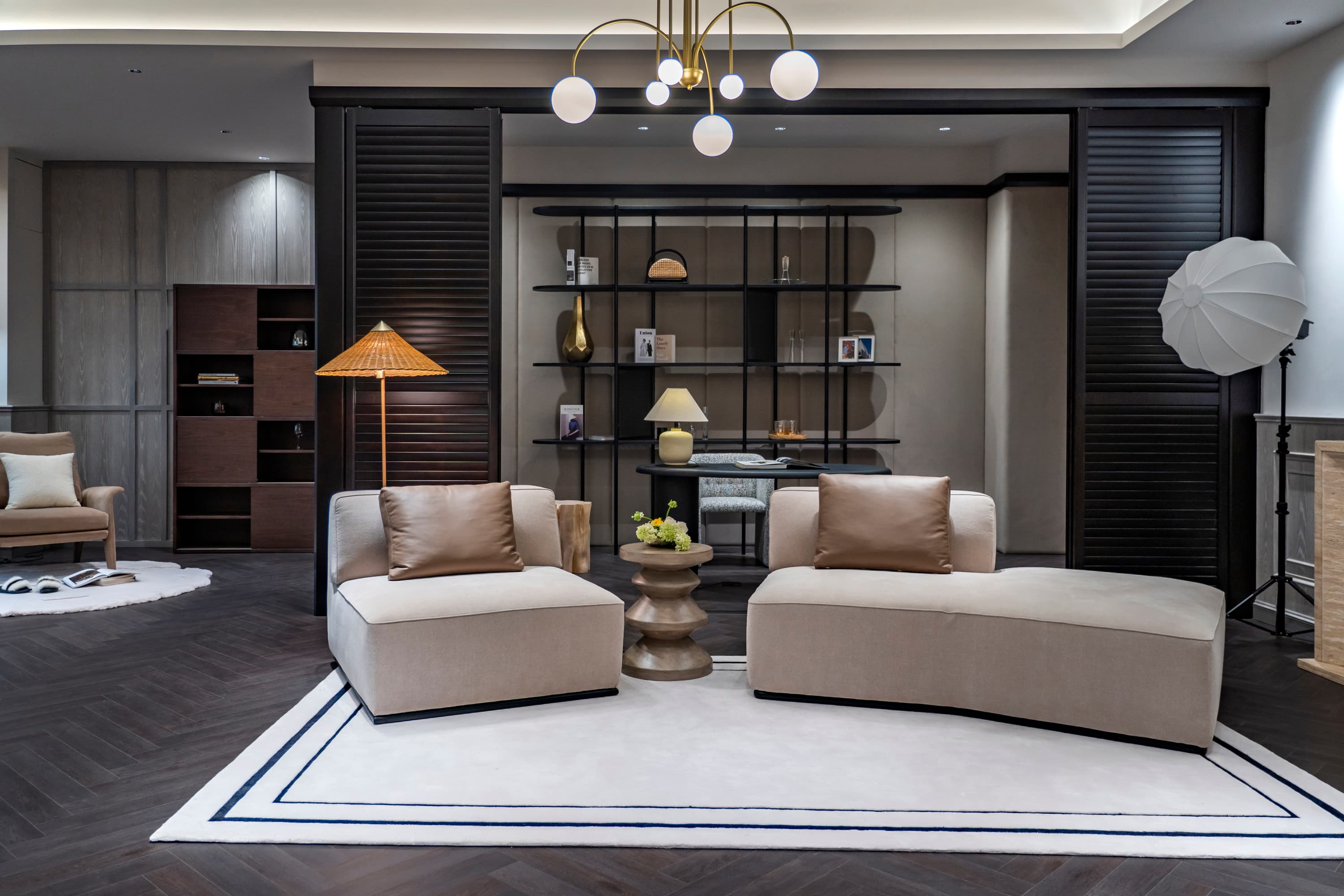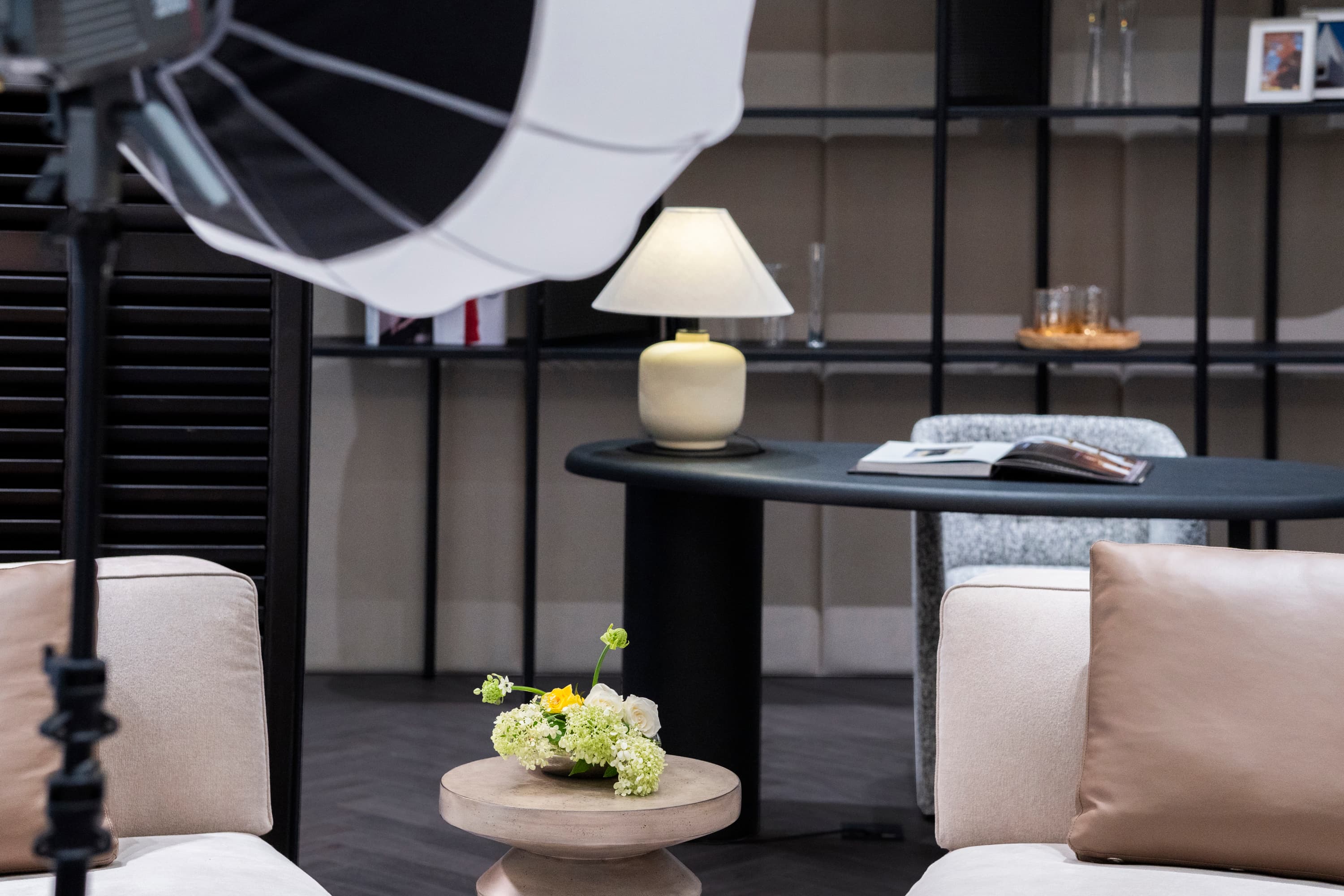 整体采用开放式布局,不仅便于商品展示与主播活动,还营造了法式沙龙或客厅的休闲氛围;以中性色为主,如米白、灰、黑、白以及淡雅的木色等,这些颜色不仅能够营造出宁静舒适的空间感受,还能与各种服饰产品完美融合,不抢镜也不失格调;选择简约优雅的现代法式家具作为直播间的主要陈设,通过装饰品的点缀,增添了法式情调,使整个空间更加完整和谐。