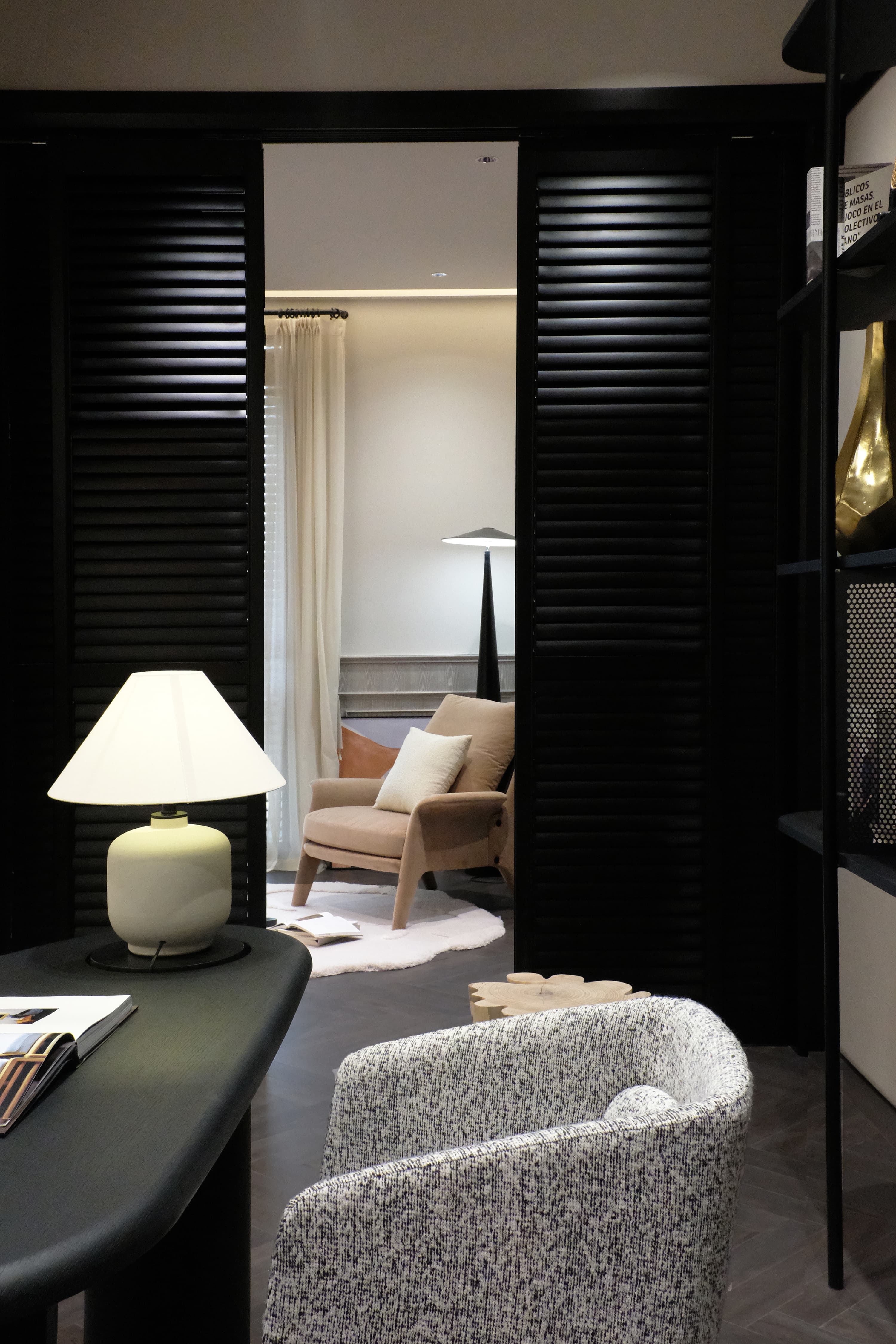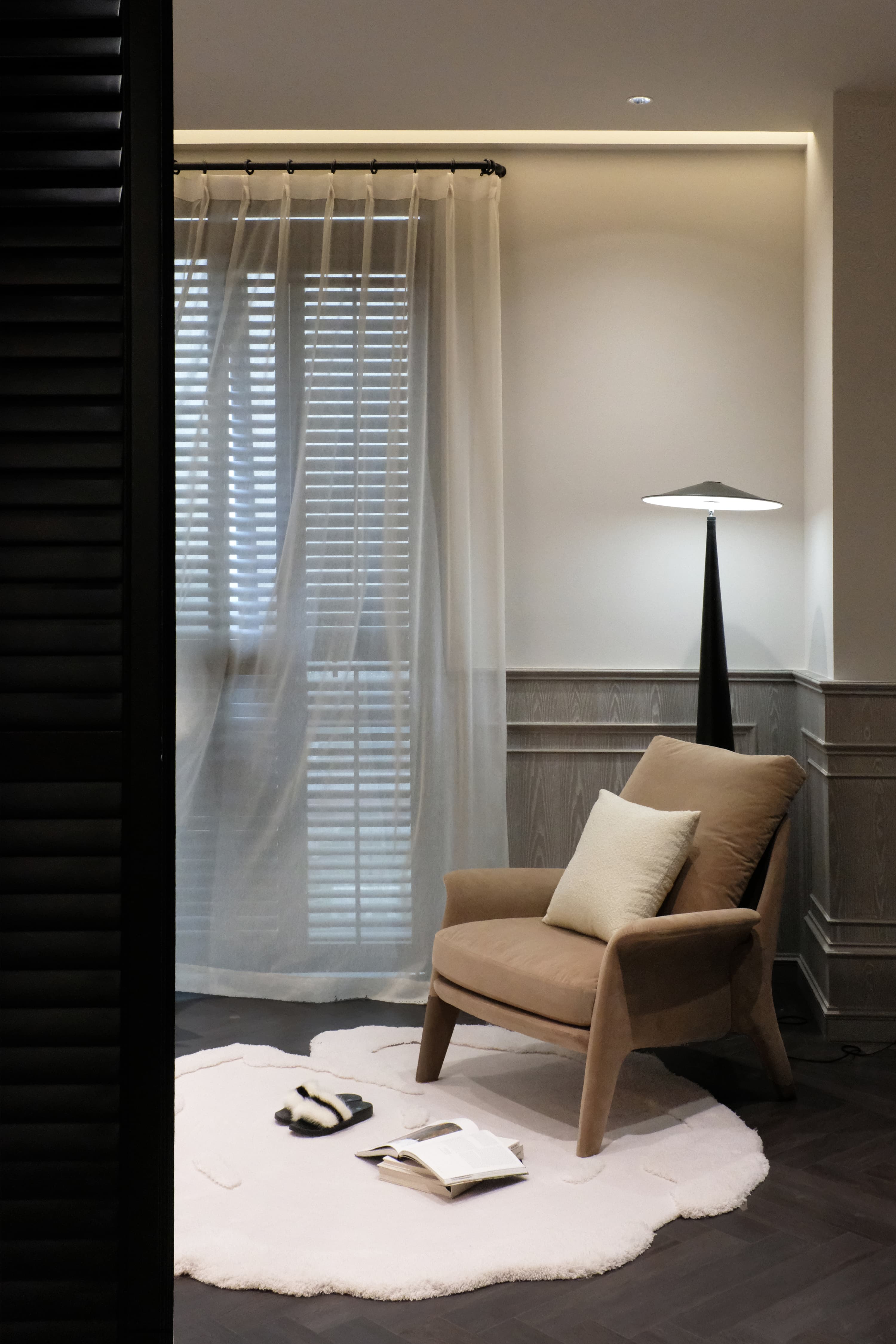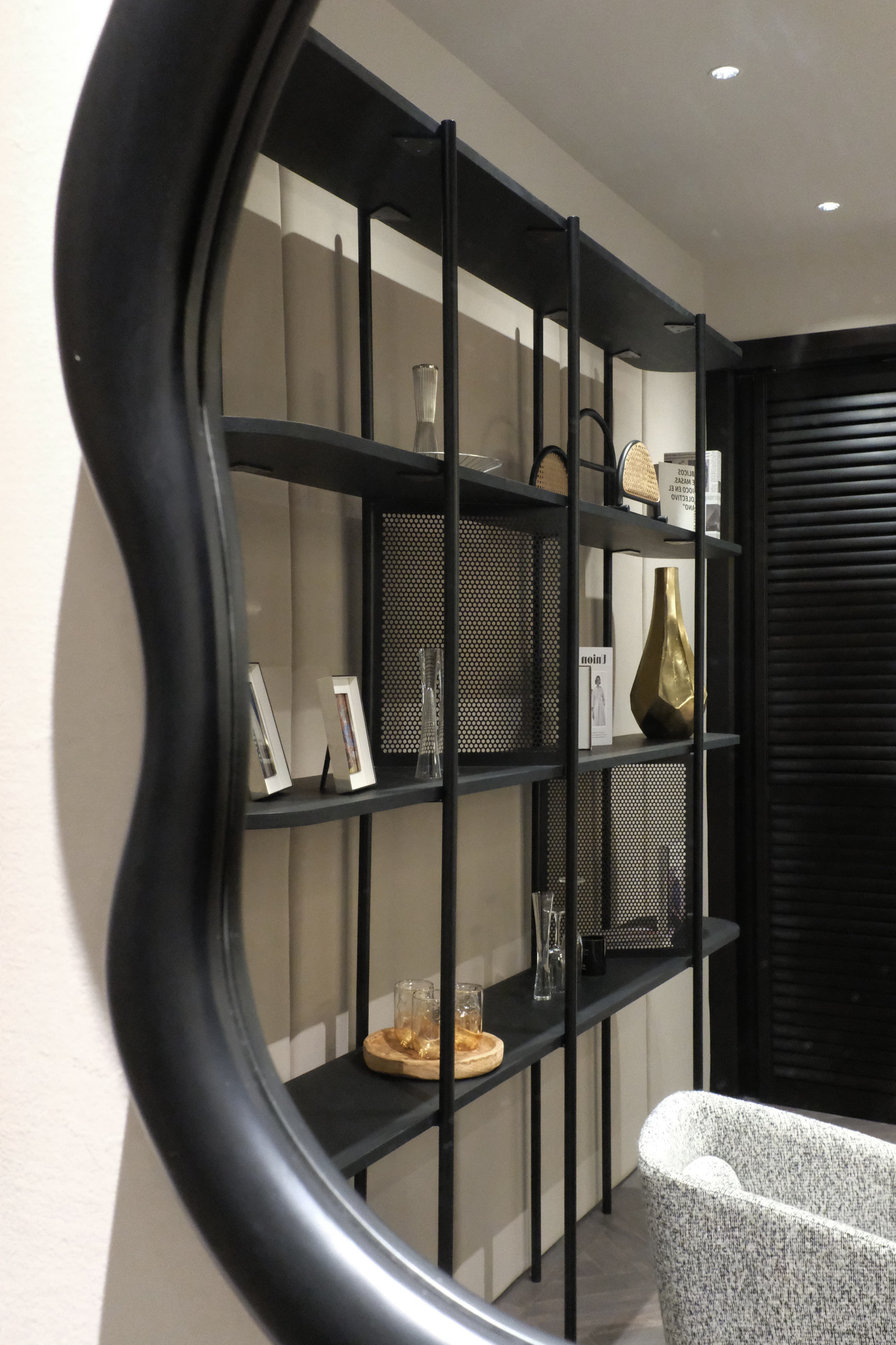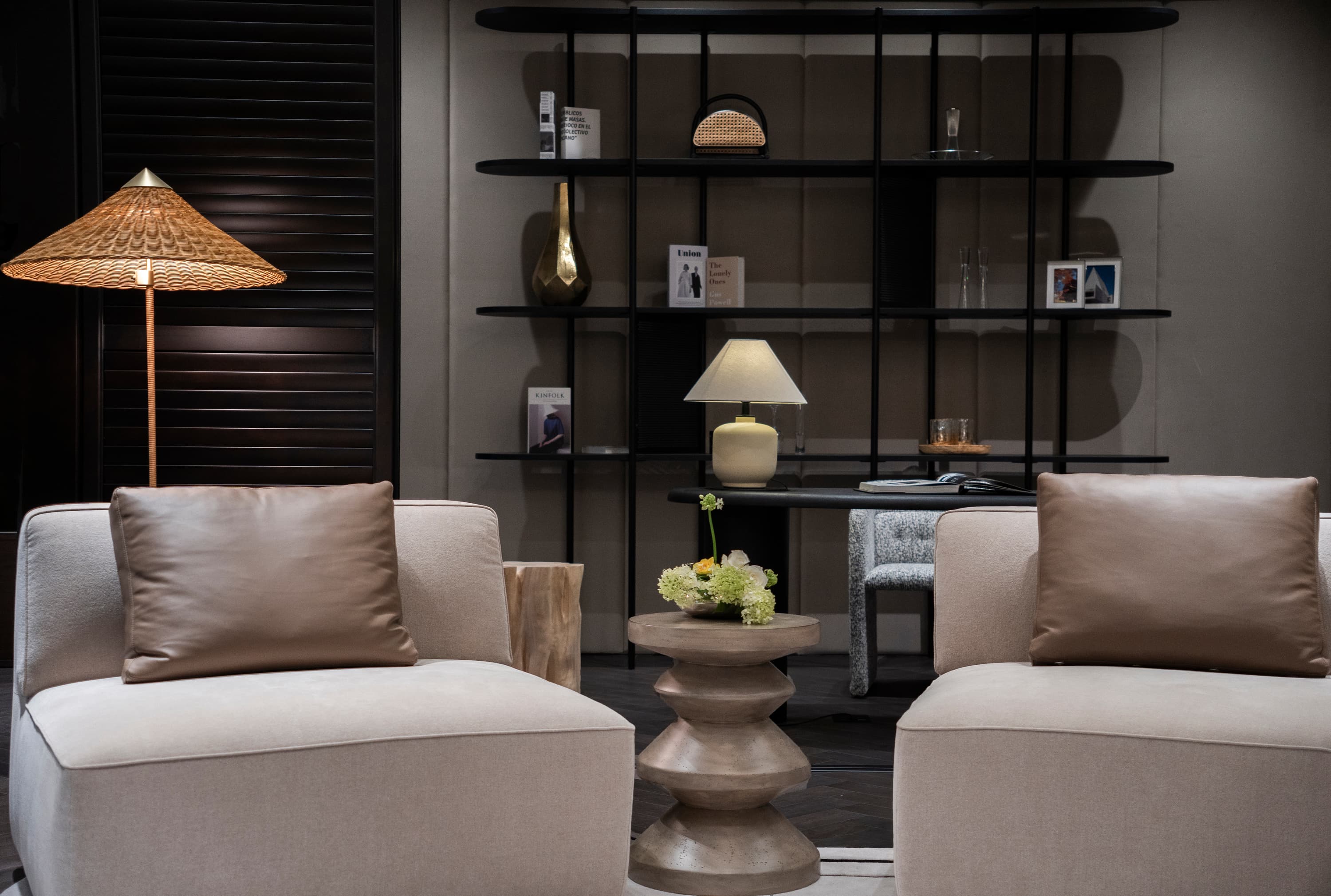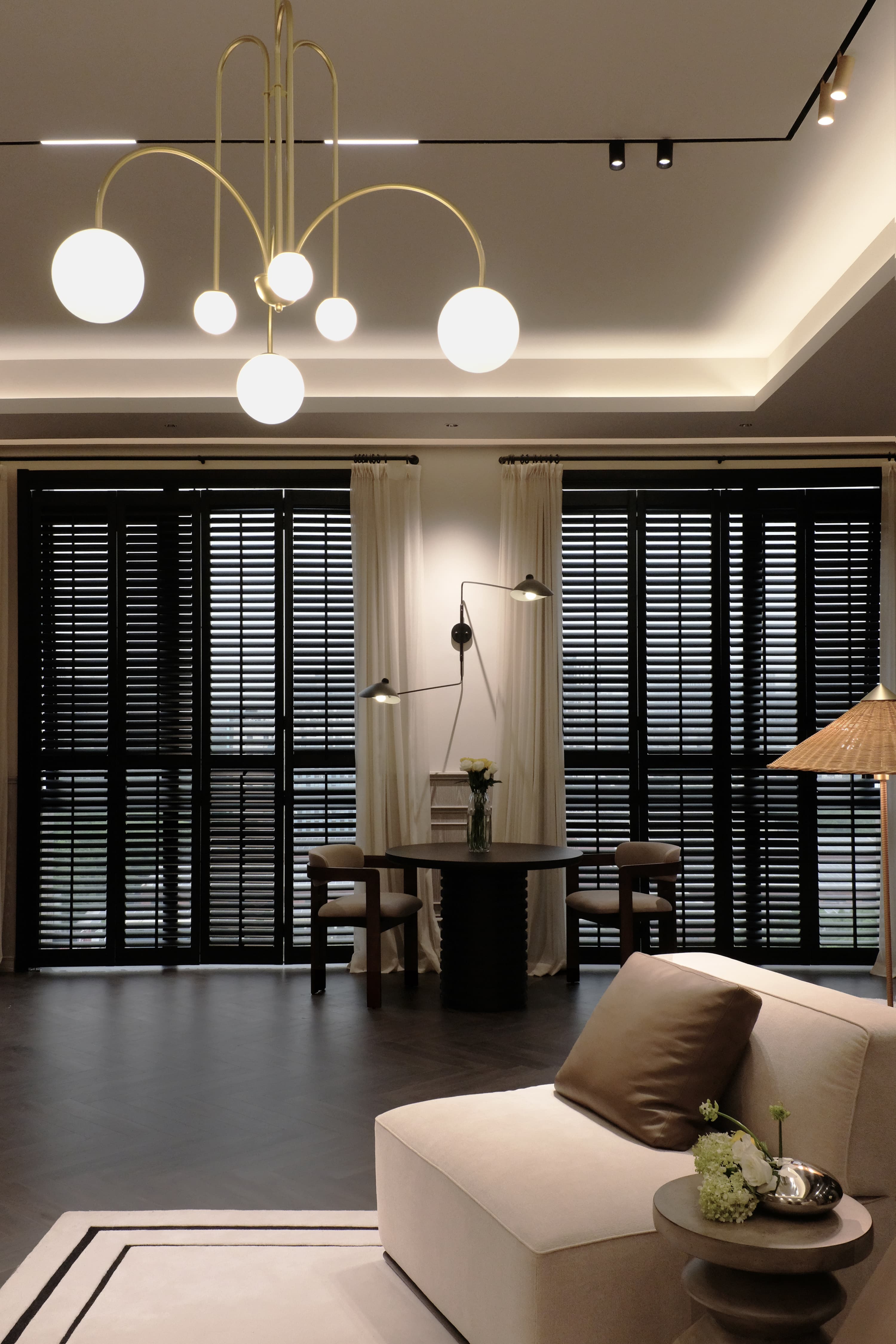 整体采用开放式布局,不仅便于商品展示与主播活动,还营造了法式沙龙或客厅的休闲氛围;以中性色为主,如米白、灰、黑、白以及淡雅的木色等,这些颜色不仅能够营造出宁静舒适的空间感受,还能与各种服饰产品完美融合,不抢镜也不失格调;选择简约优雅的现代法式家具作为直播间的主要陈设,通过装饰品的点缀,增添了法式情调,使整个空间更加完整和谐。