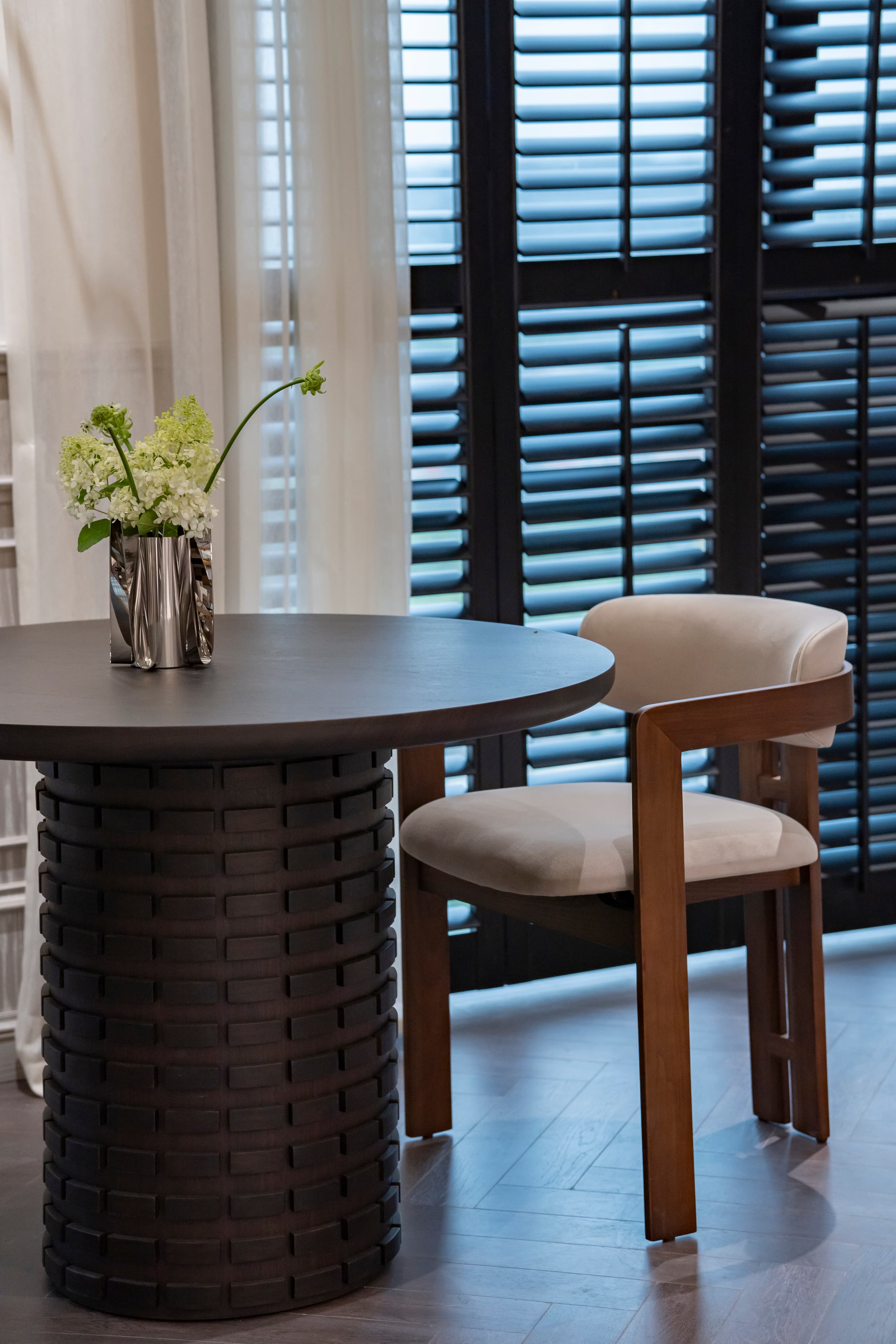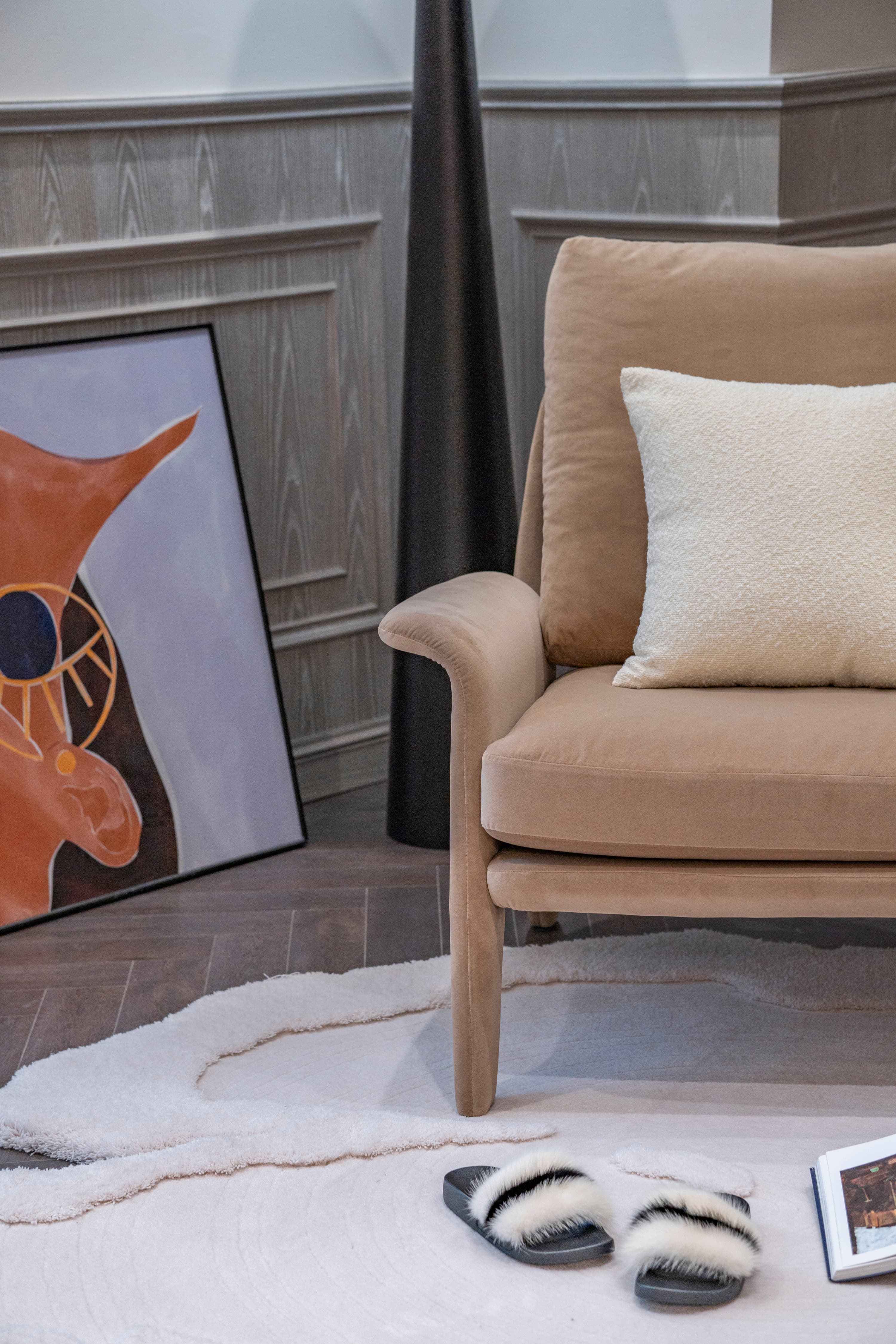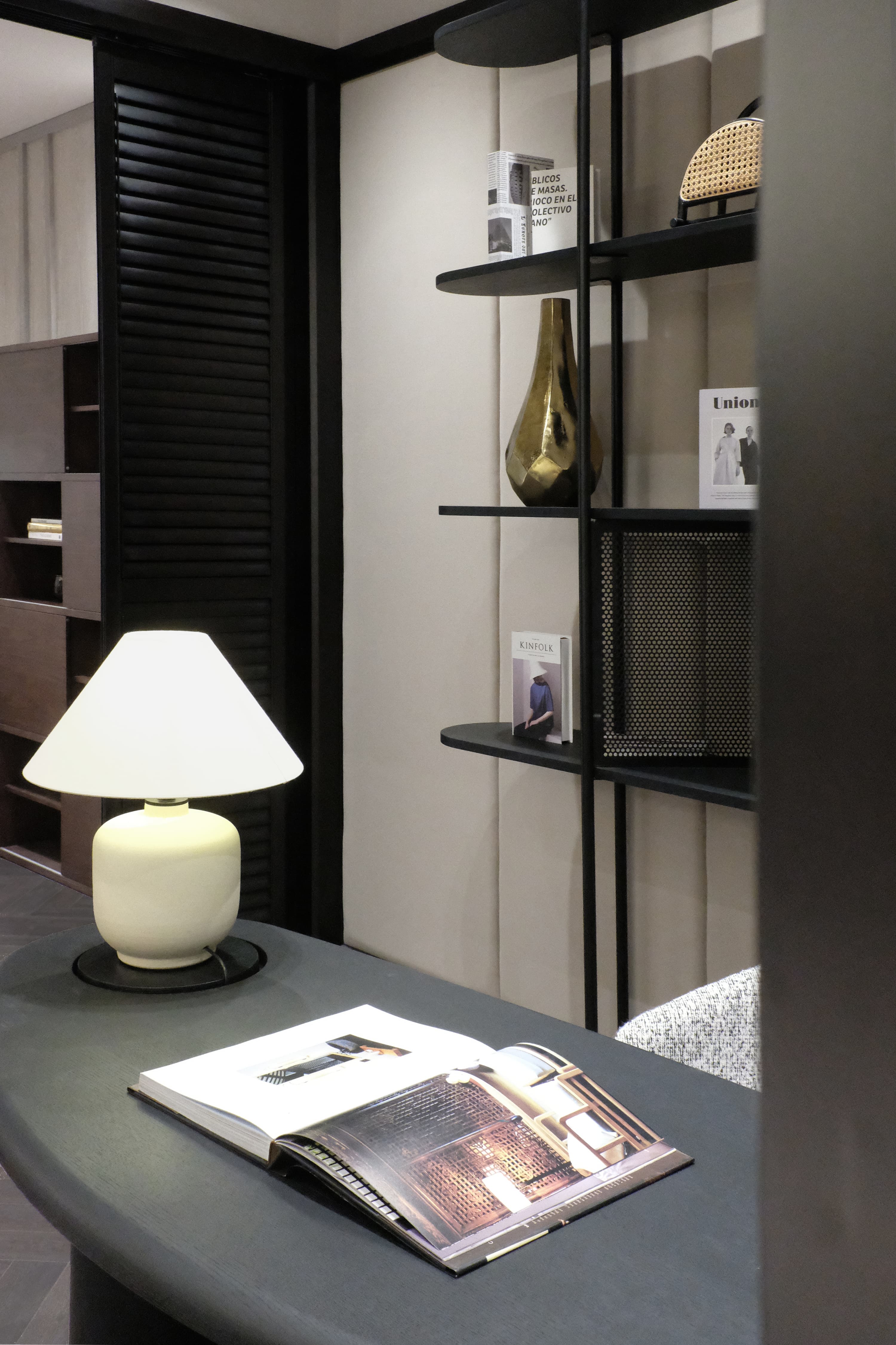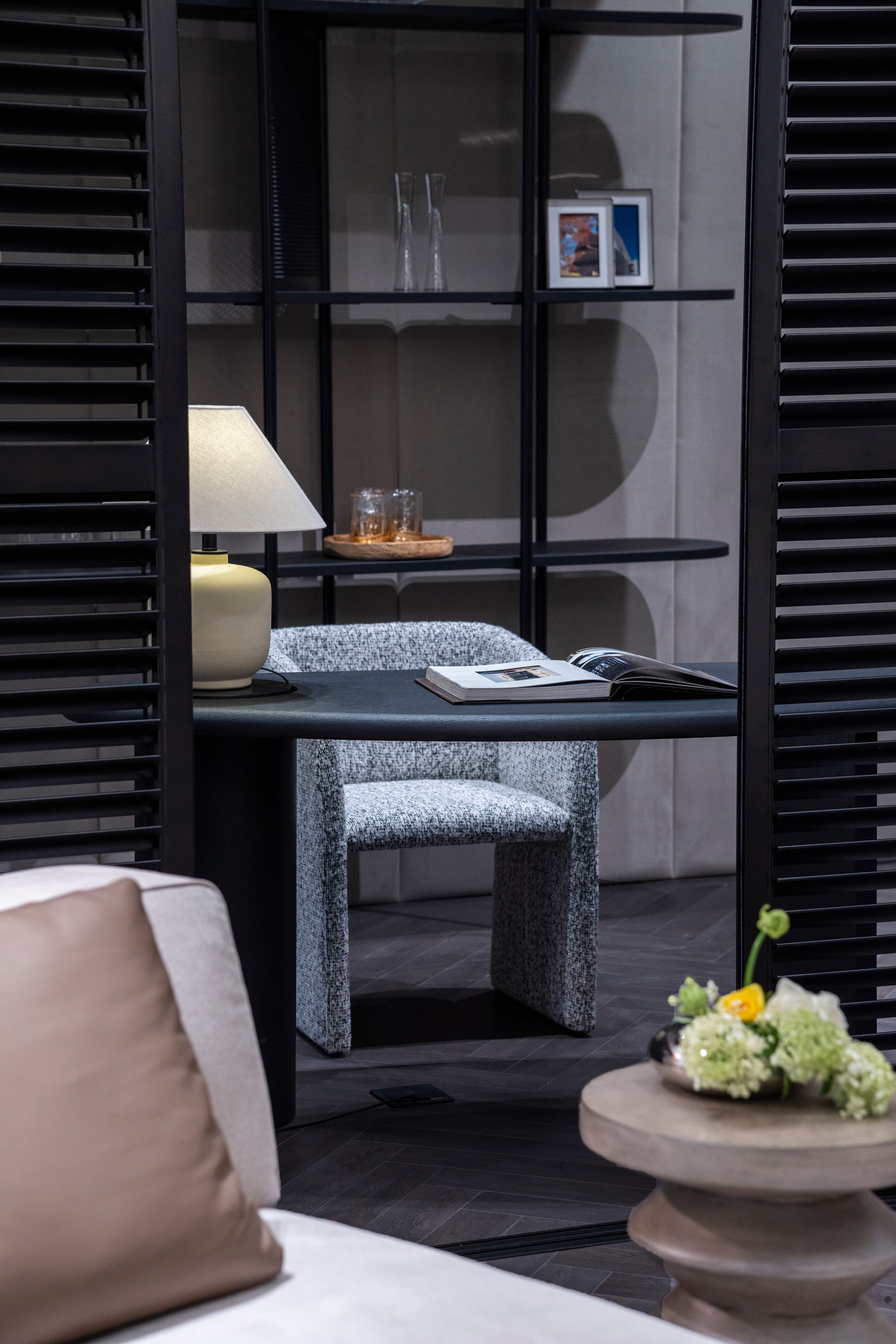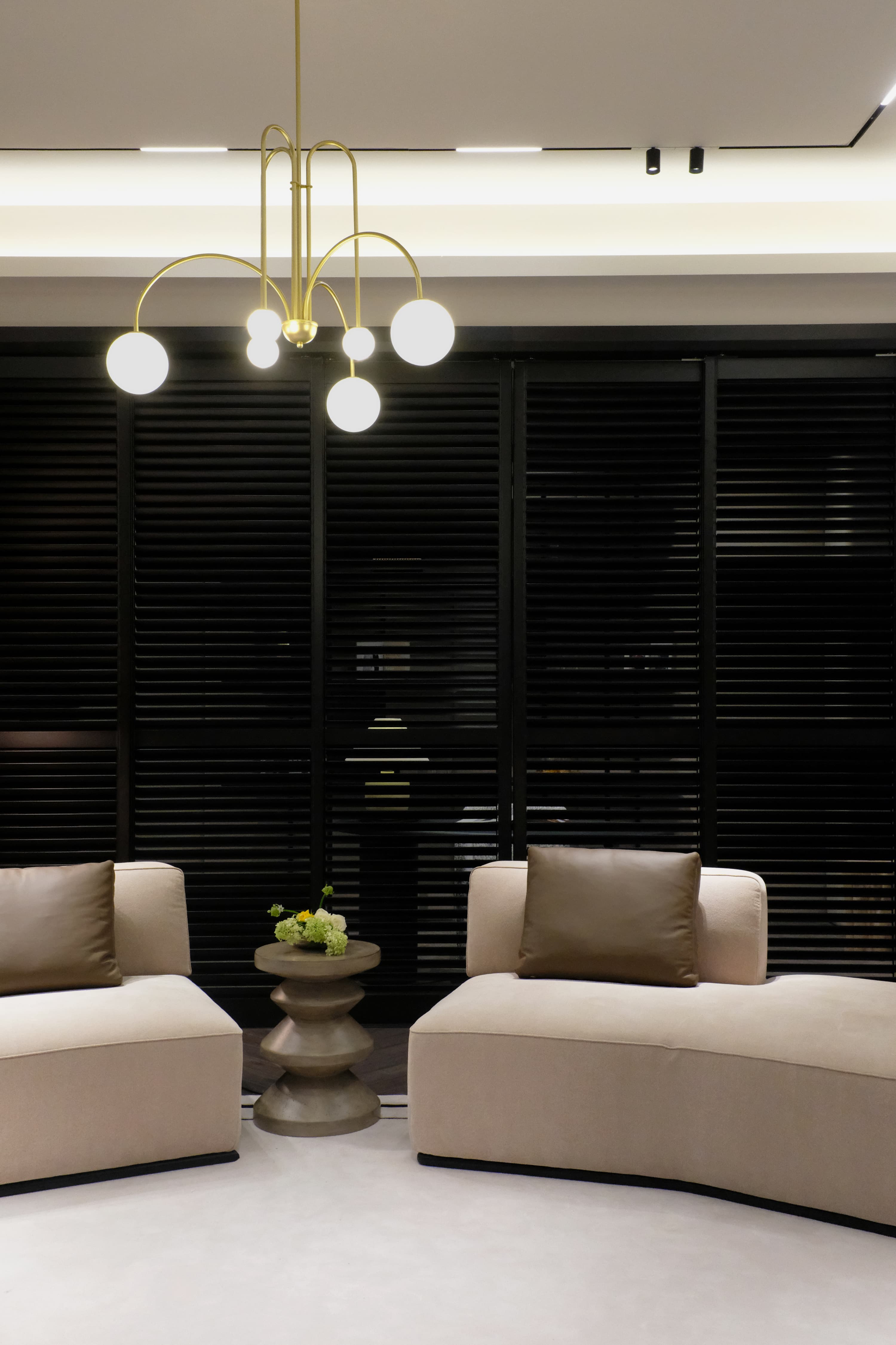 整体采用开放式布局,不仅便于商品展示与主播活动,还营造了法式沙龙或客厅的休闲氛围;以中性色为主,如米白、灰、黑、白以及淡雅的木色等,这些颜色不仅能够营造出宁静舒适的空间感受,还能与各种服饰产品完美融合,不抢镜也不失格调;选择简约优雅的现代法式家具作为直播间的主要陈设,通过装饰品的点缀,增添了法式情调,使整个空间更加完整和谐。