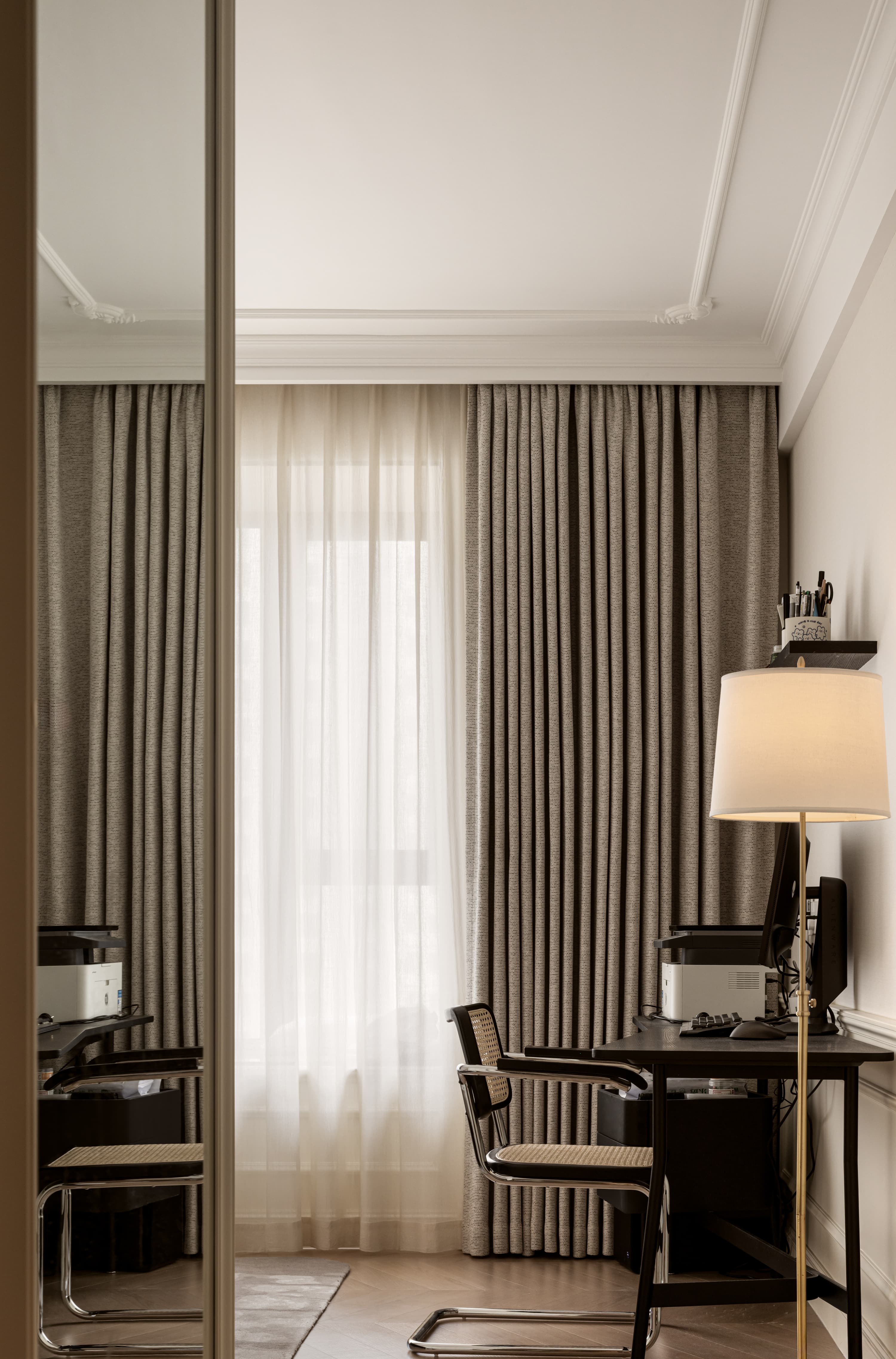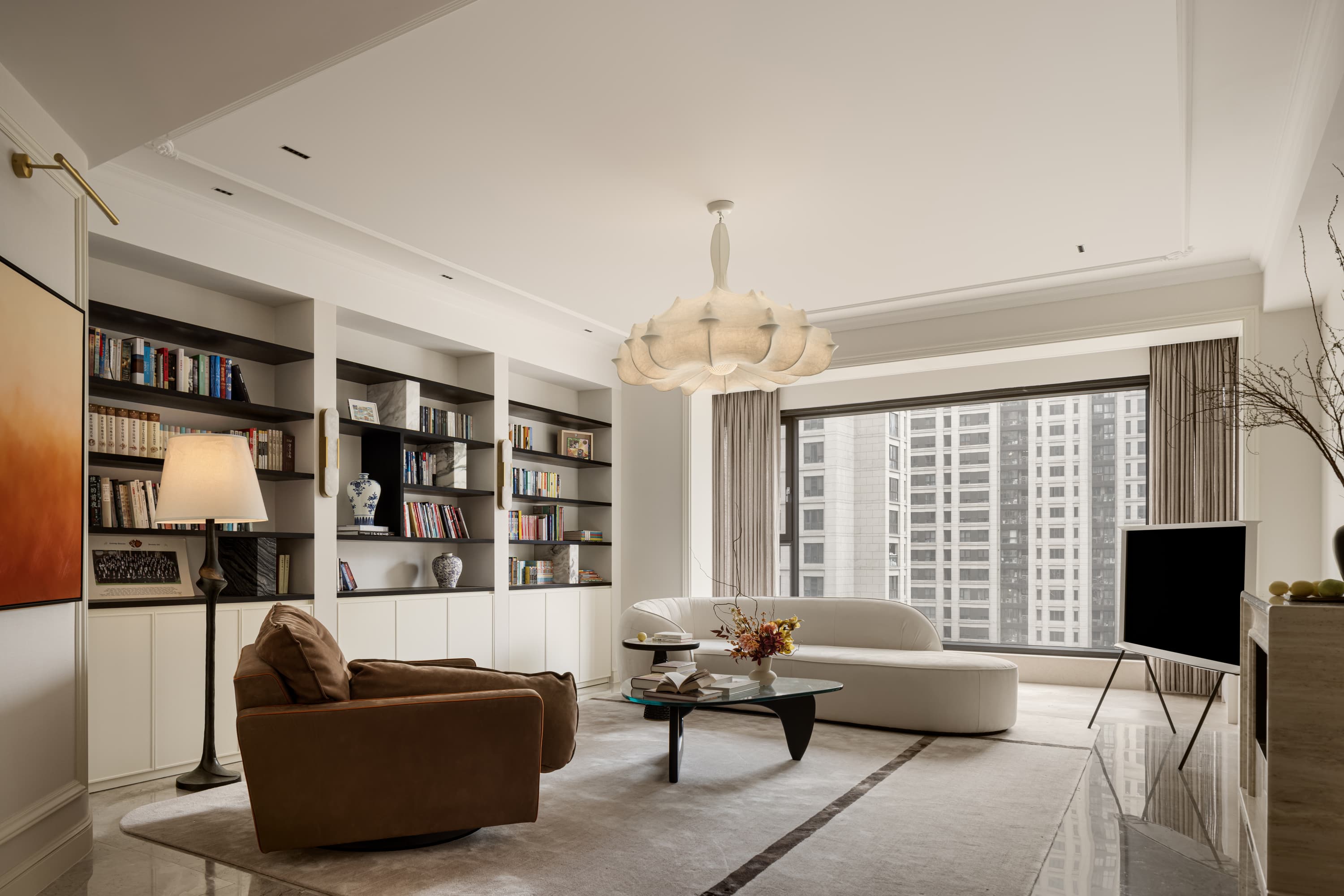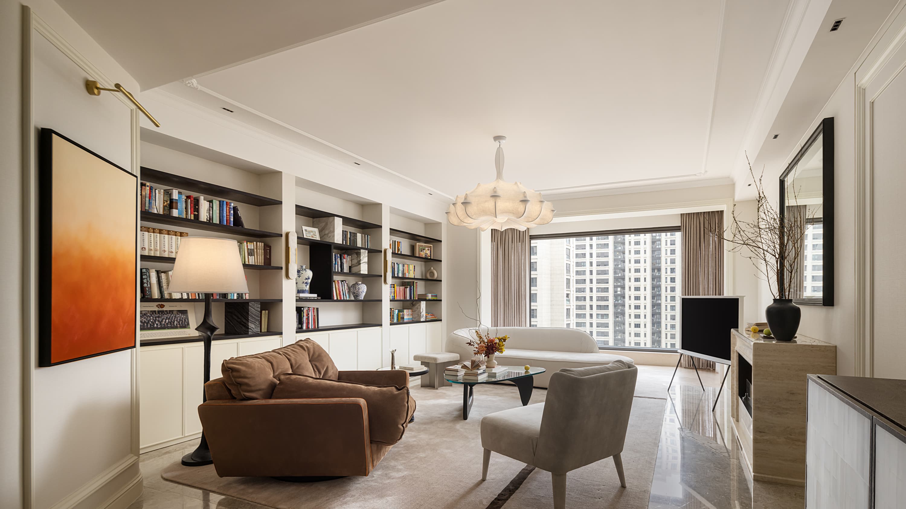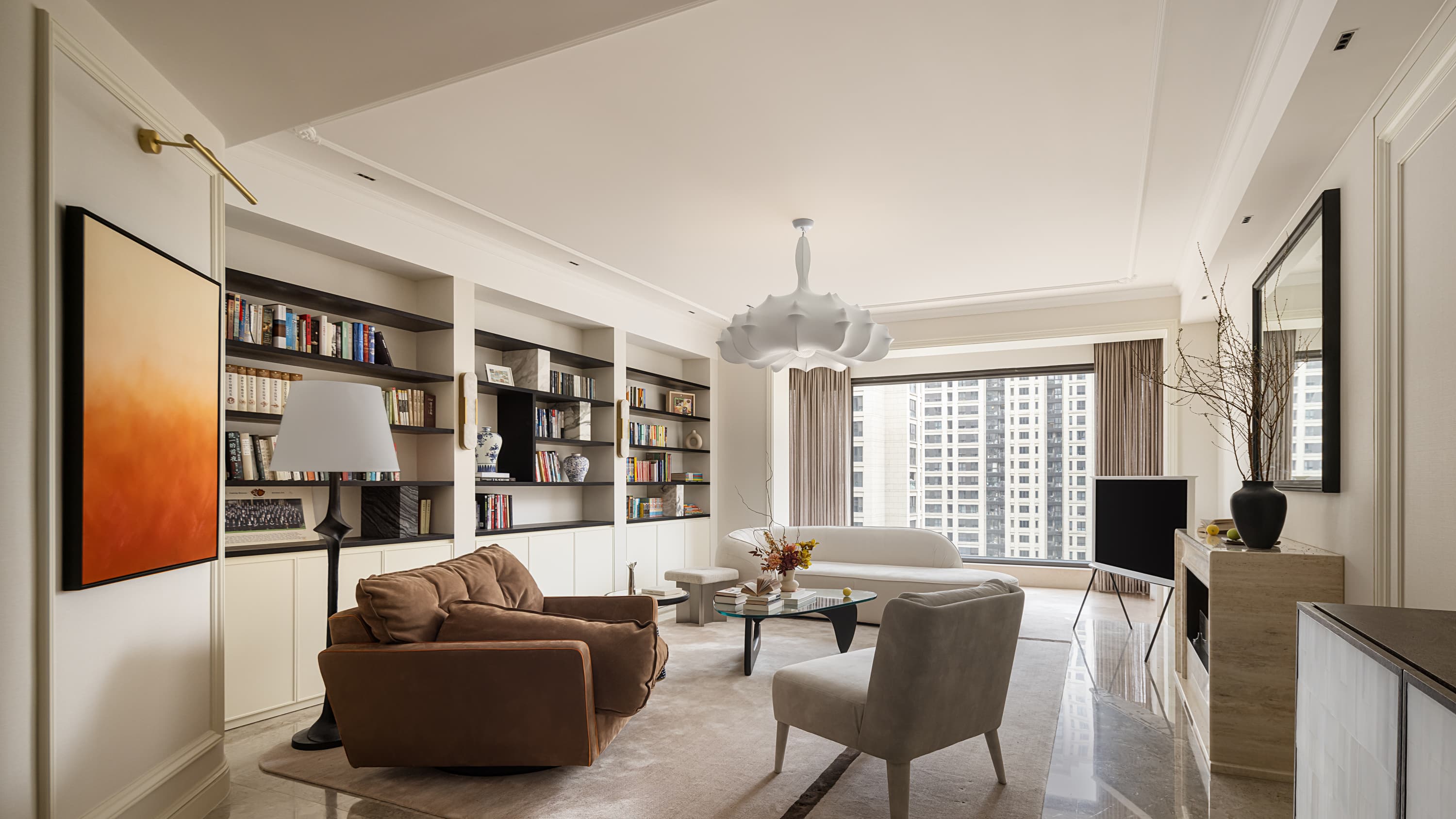 这套私宅融合了法式浪漫与现代简约,以米白色为主色调,给人明亮、高雅的感觉。空间上注重开放性和流动感,强调线条的流畅和家具的质感,不仅满足了业主日常生活需要,还营造出温馨舒适的居家氛围。